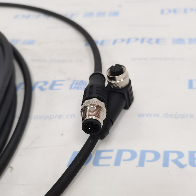 該線纜兩端分別為M12母頭斜角12極與M12公頭直線12極,這樣的設計使其能夠精準適配相應的傳感器與執行器設備,確保信號傳輸的穩定性與高效性。